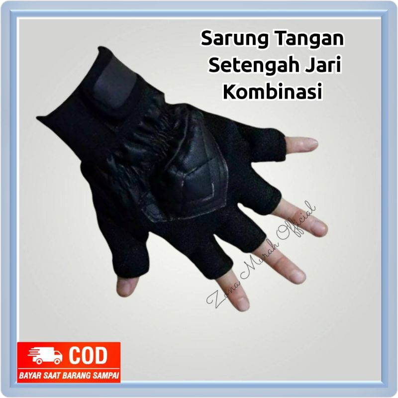 Harga Sarung Tangan Motor Pria Setengah Jari Kain Empuk Kombinasi Kulit Sintetis PU Glove Finger Half Keren Kaos Tangan Cowok Kekinian Polos Warna Hitam Zona Murah Official