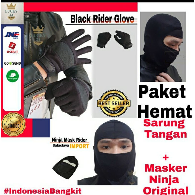 Produk ini memiliki 8 Variasi Paketan yaitu : Paket BlackBuff,Paket Masker,Paket Masker Ninja,Sarung Tangan Saja,Paket Manset,Paket Riding,Paket Exclusive,Paket Riding+ Bag,