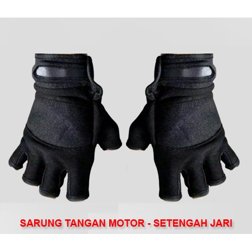 Sarung Tangan Half Finger Black Hitam - Motor - Sepeda - Setengah Jari